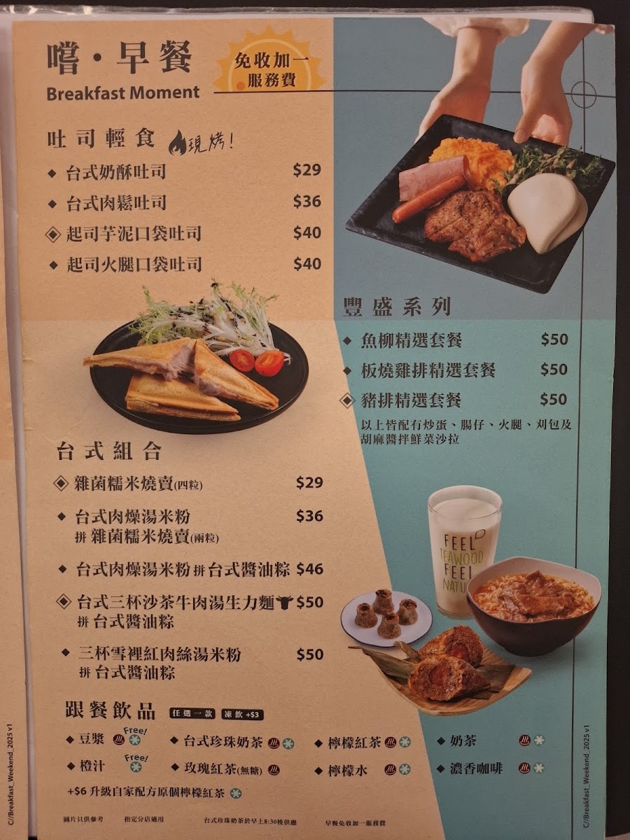 Start your day right with their enticing Toast Breakfasts, available from 7:30 A.M. to 11:00 A.M. Options like the Pork Floss Toast and Condensed Milk and Butter Toast are sure to hit the spot for breakfast lovers.